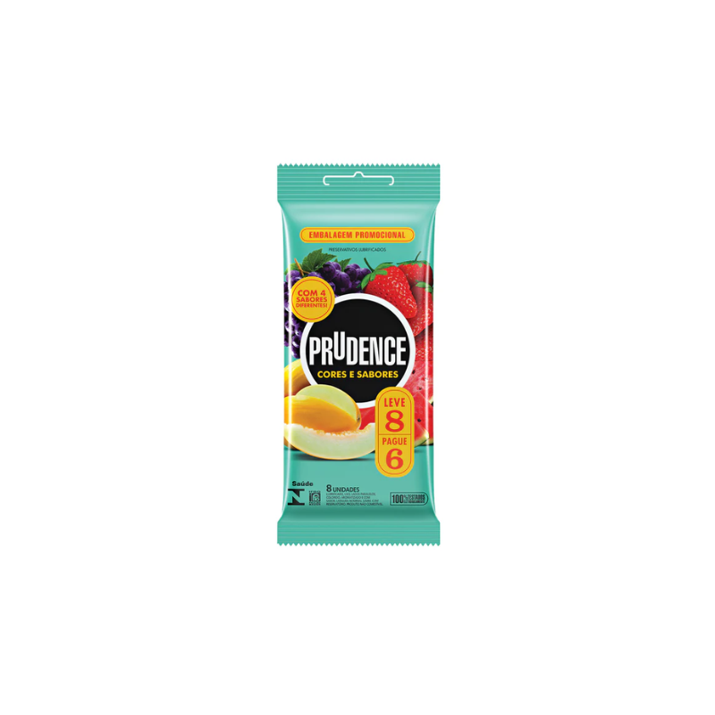 O Preservativo Prudence Cores e Sabores é colorido, aromatizado e com sabor Morango, Uva, Melão e Melancia. É lubrificado, liso e possui lados paralelos, sua largura nominal é de 52mm, com reservatório. Aproveite! Esse produto não é comestível e é 100% testado eletronicamente.