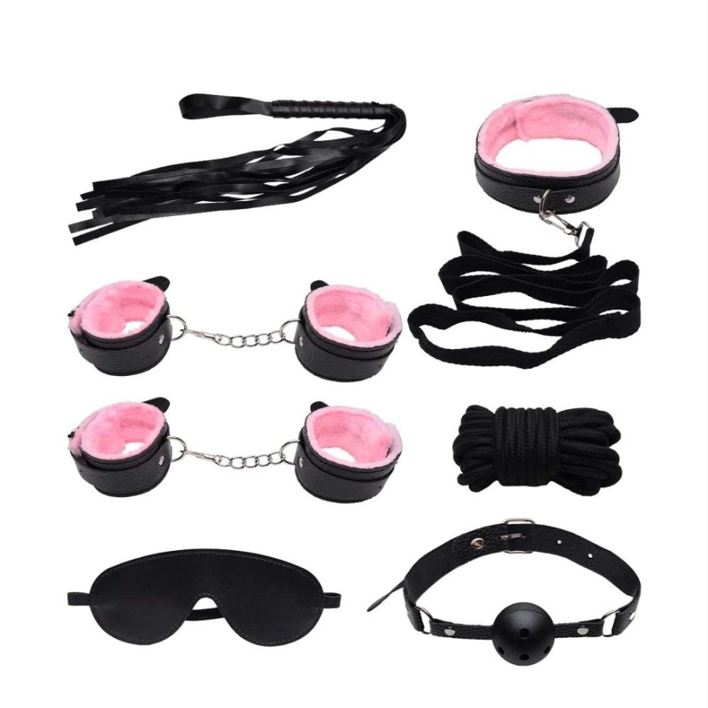 Explore o mundo intrigante do prazer e da submissão com o Kit Sado Preto com Rosa 2, uma coleção de 7 itens projetados para elevar suas experiências sensuais a novos patamares. Com mordaça, venda, coleira com estirante, guia, chicote, algema e tornozeleira, este kit oferece tudo o que você precisa para entrar no universo envolvente do bondage e do sadomasoquismo!