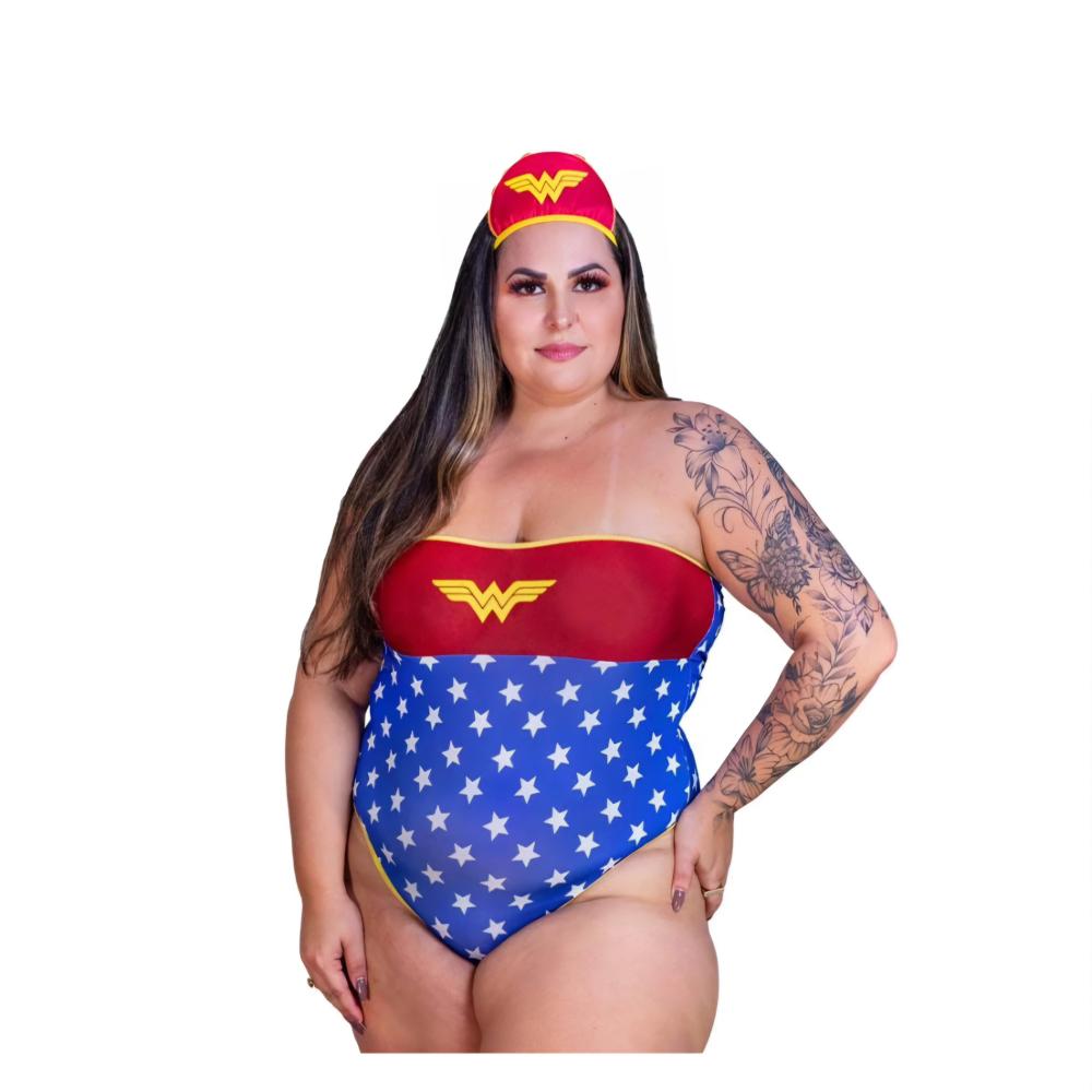 Mini Fantasia Plus Size Mulher Maravilha Body 2 Pimenta Sexy