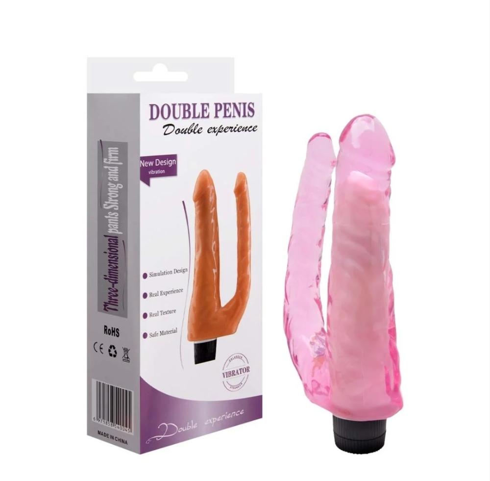 Pênis Realístico Duplo Vibrador Rosa 22 X 5Cm Sexy Import