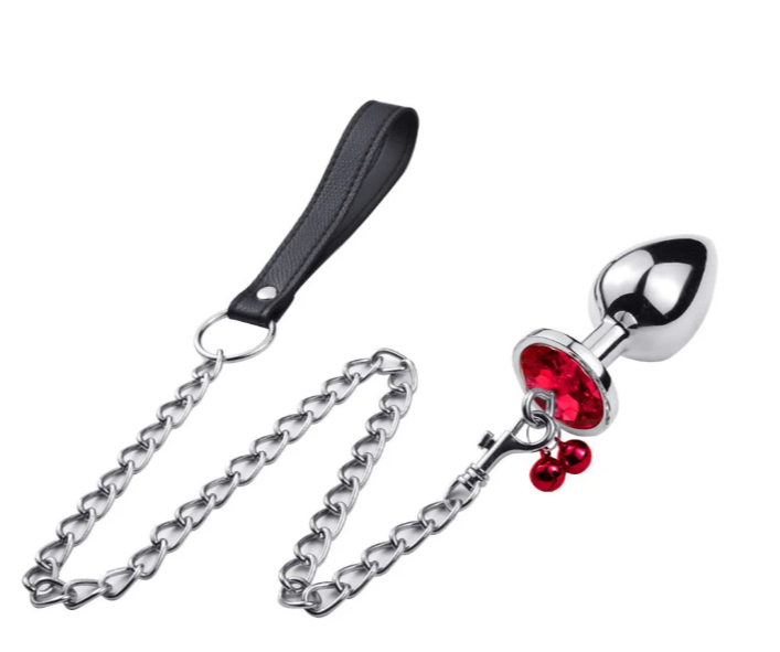 Plug Anal em aço com Sino e corrente este é um acessório erótico diferente que serve como estimulador anal em brincadeiras fetichistas,