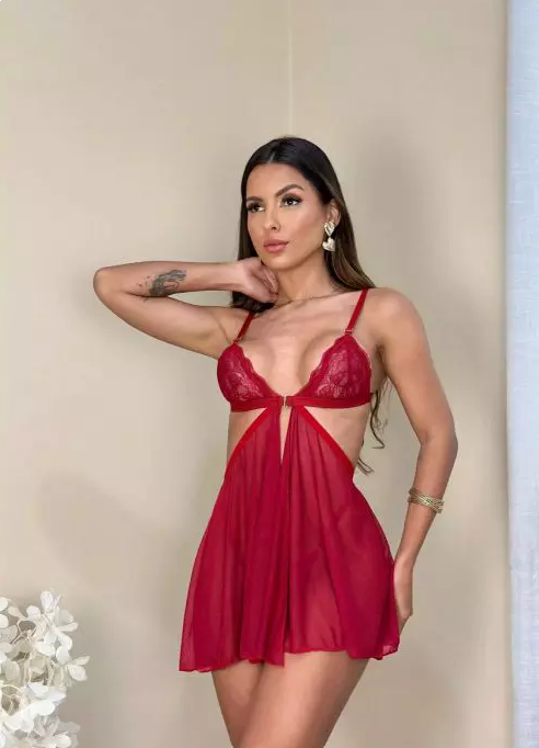 Modelo aberto na frente, trazendo sensualidade e caimento fluido.