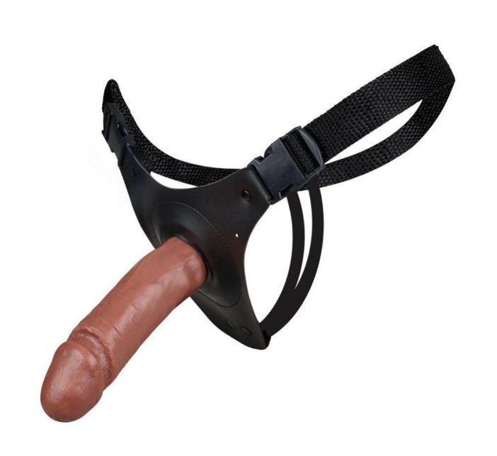 Cinta peniana com prótese realística de 15 x 3,8cm na cor Chocolate. Fabricada em material sintético semelhante à couro, revestimento interno aveludado para garantir conforto, fácil acomodação e uso correto do acessório.