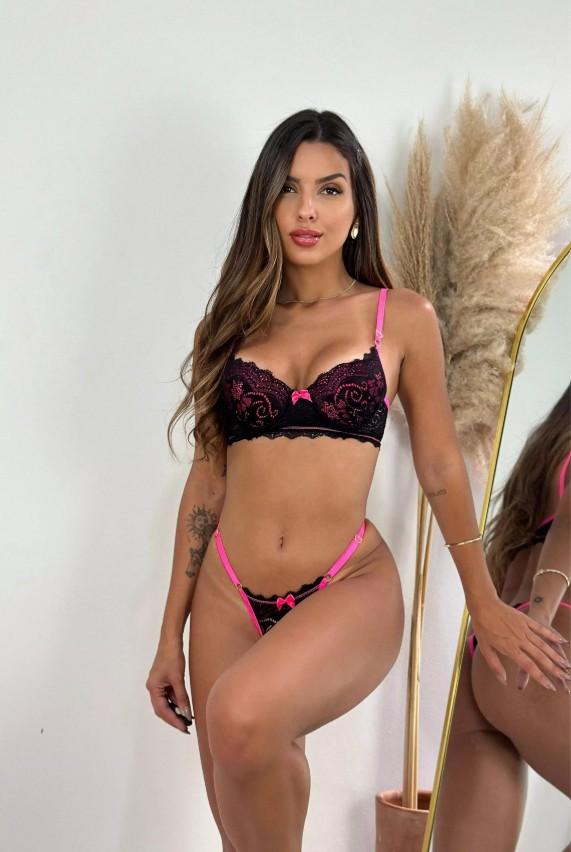 Conjunto Aurora Com Bojo G Preto Com Pink